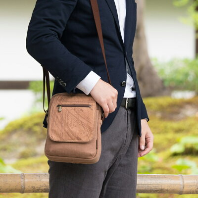 柿渋染 ショルダーバッグ 斜めがけ レディース 縦型フラップショルダー 軽い 軽量 旅行 日本製 京都 ピンクベージュ キャメル ブラウン 茶 茶色 キャンバス コットン トート 浴衣 着物 和装 和柄 上品 カジュアル ギフト プレゼント 孫 [くれあーれきき]