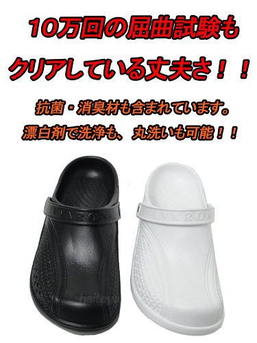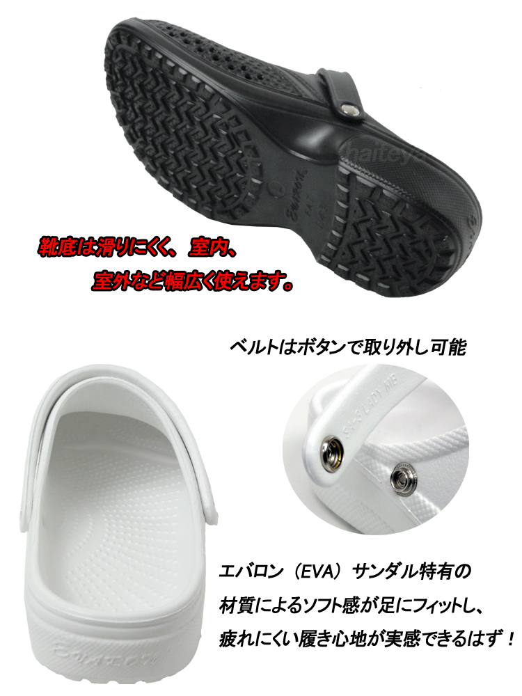 ●素材/甲材・中敷・底材:EVA(エバロン) ●ワイズ/4E相当 ●カラー/ホワイト、ブラック ●サイズ/ (M)25.5〜26.0cm (L)26.5〜27.0cm (LL)27.5〜28.0cm 注意 画面上と実物では多少色具合が異なって見える場合もございます。